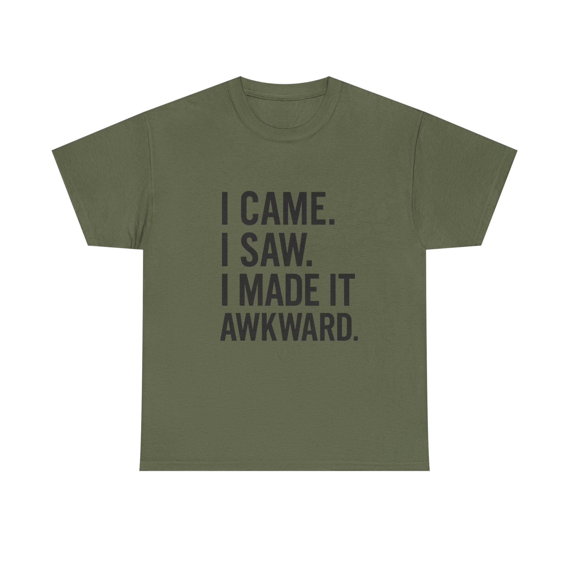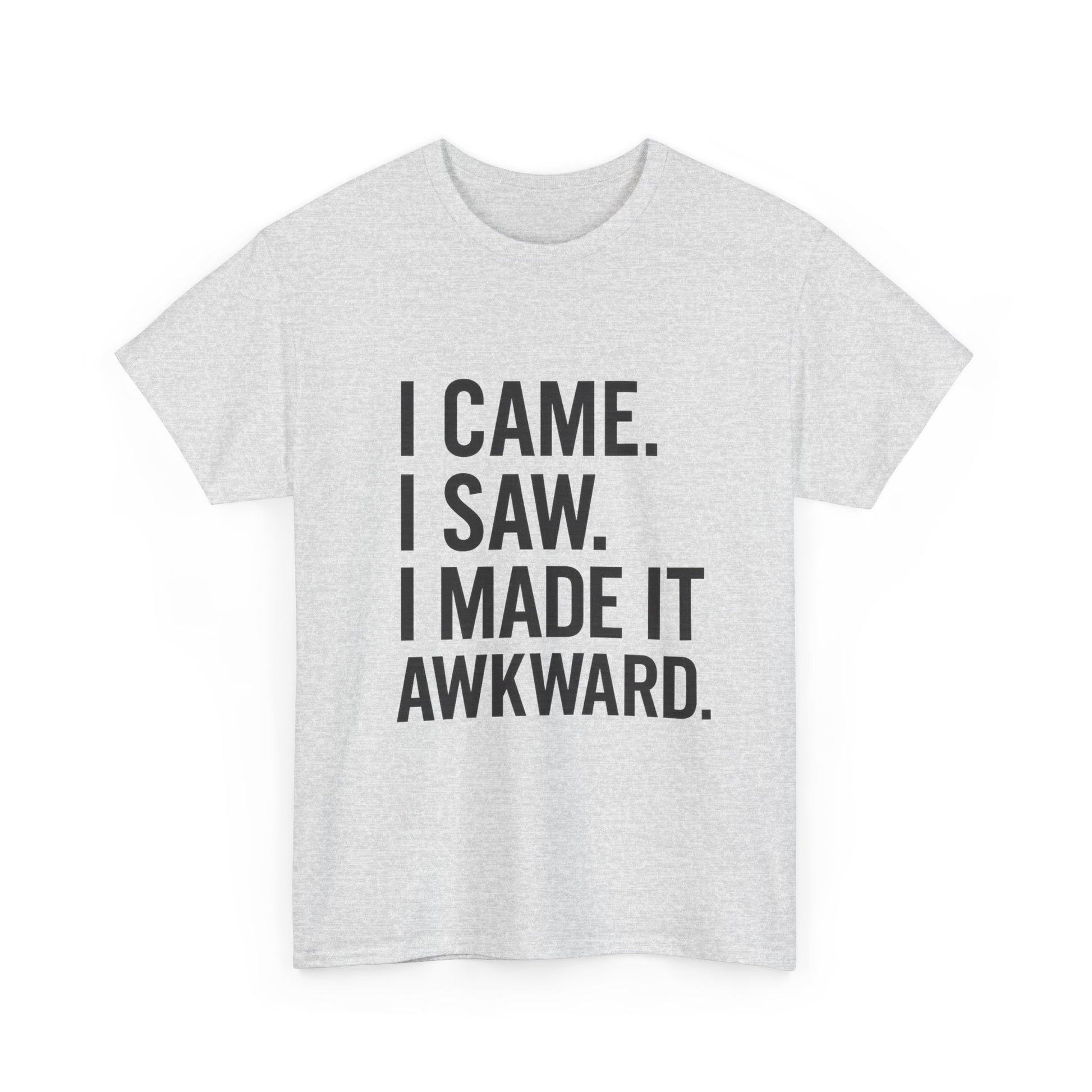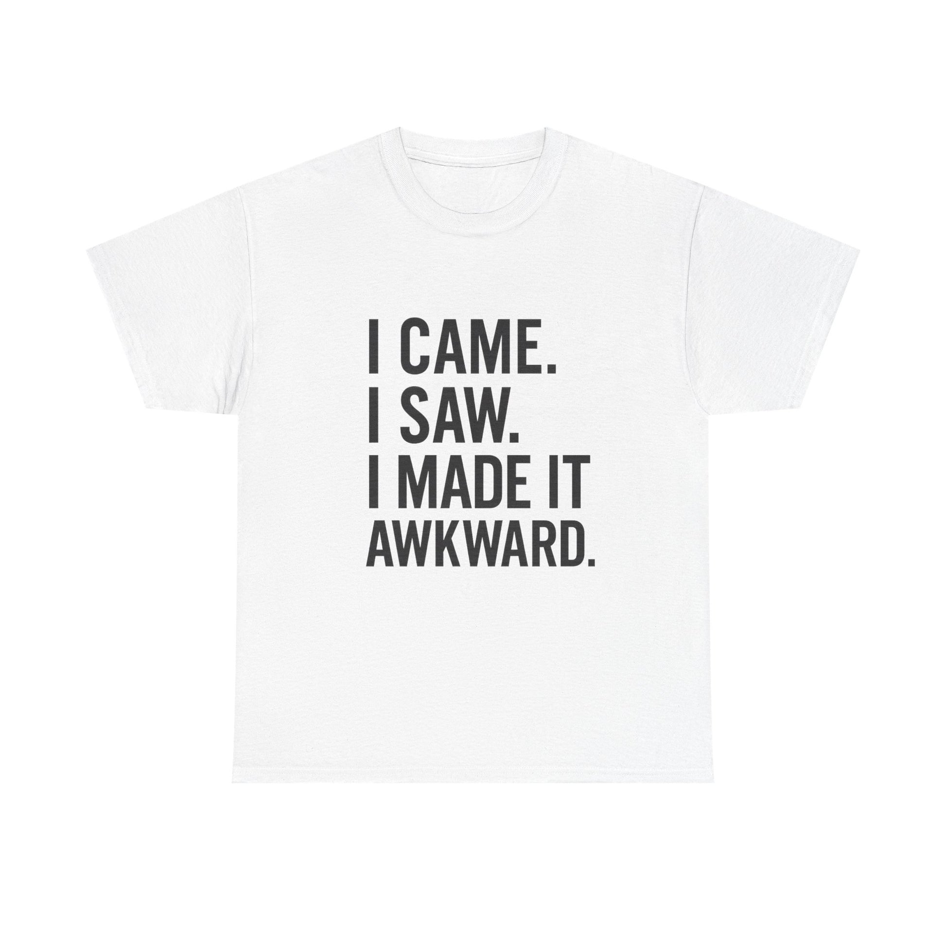 Featuring the witty phrase “I Came. I Saw. I Made It Awkward.” in bold text, this shirt makes a statement that’s both relatable and hilarious. Whether you're attending a casual barbecue, celebrating a birthday, or just enjoying a weekend adventure, this t-shirt adds fun personality to any look.