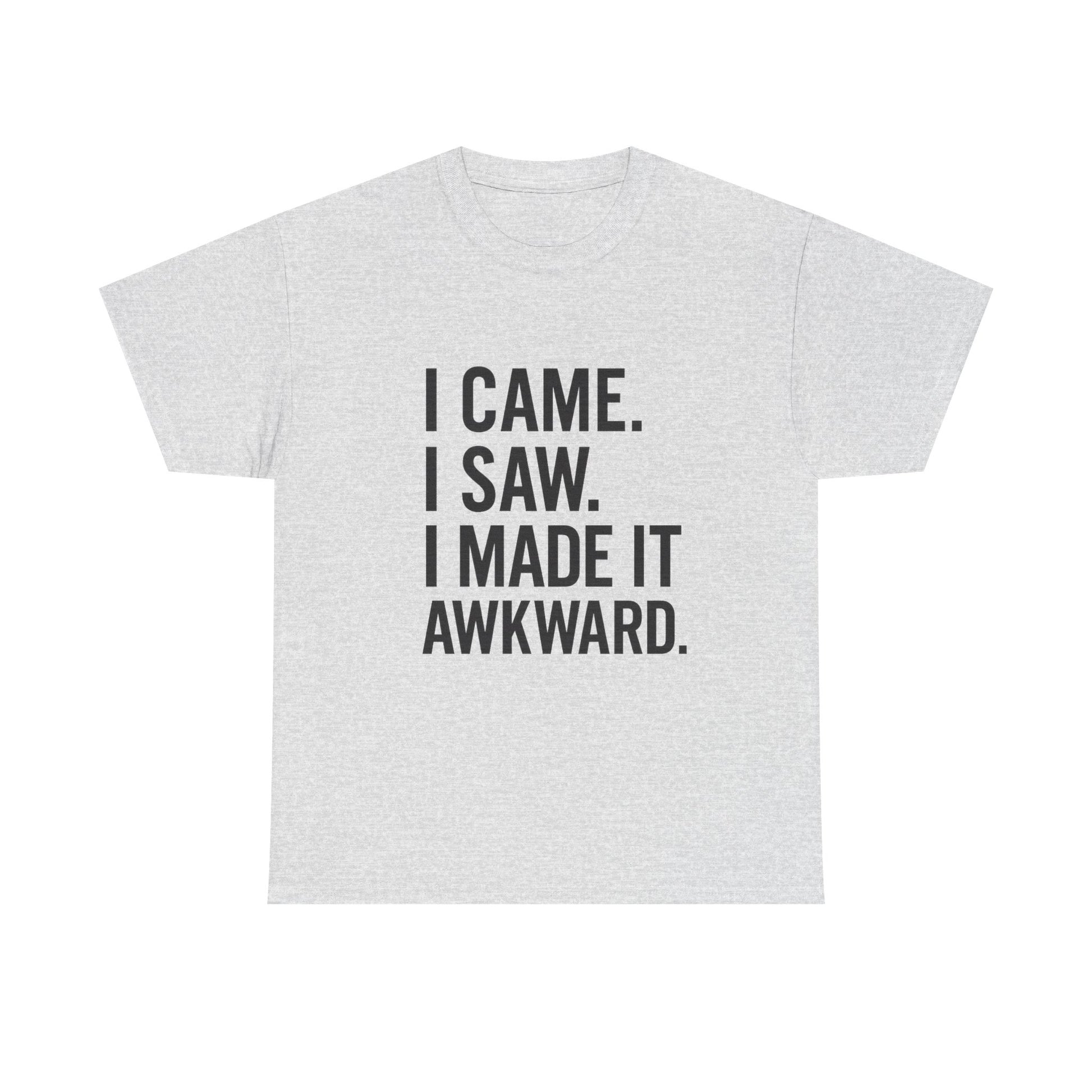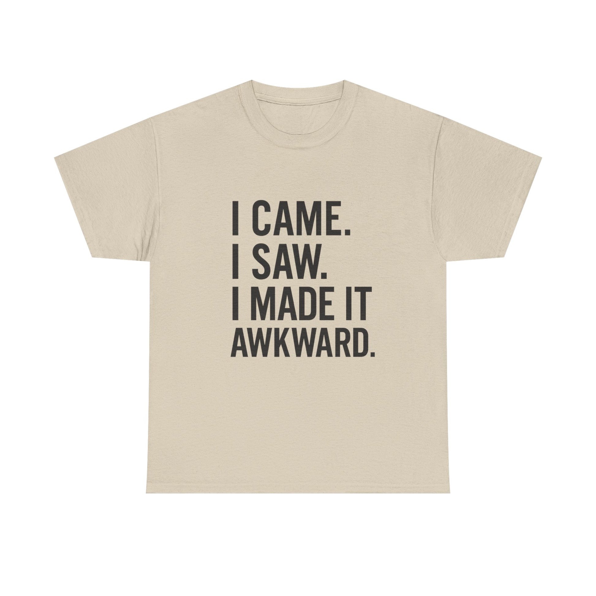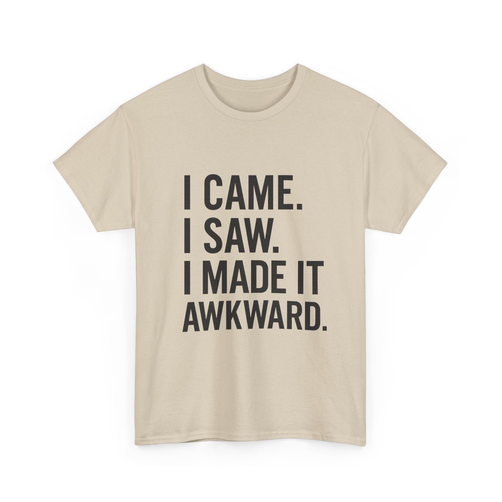 Featuring the witty phrase “I Came. I Saw. I Made It Awkward.” in bold text, this shirt makes a statement that’s both relatable and hilarious. Whether you're attending a casual barbecue, celebrating a birthday, or just enjoying a weekend adventure, this t-shirt adds fun personality to any look.