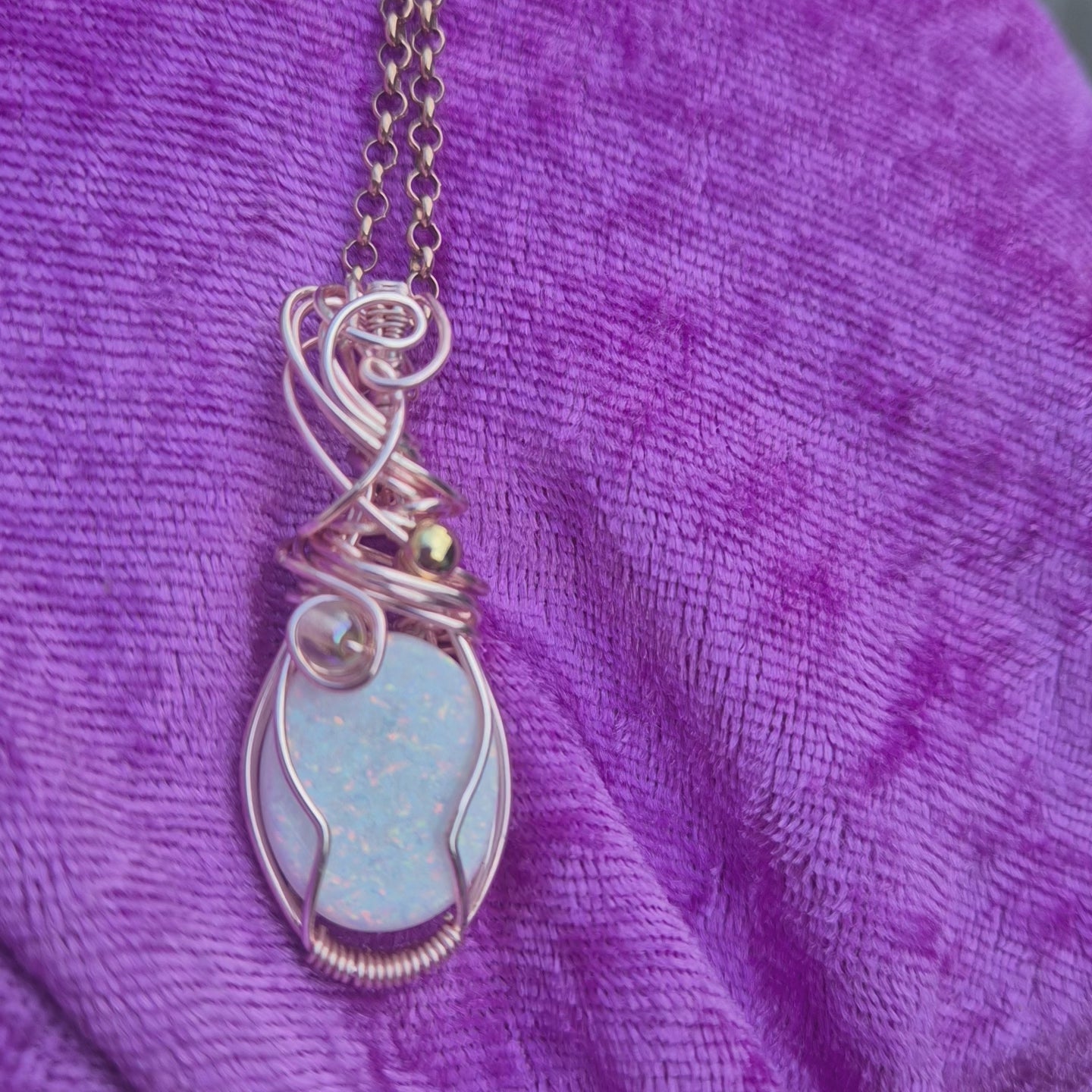 Handmade Ethiopian Opal Doublet Pendant | Wire Wrapped Rose Gold Necklace | 22” Chain | Cosmic Gemstone Jewellery