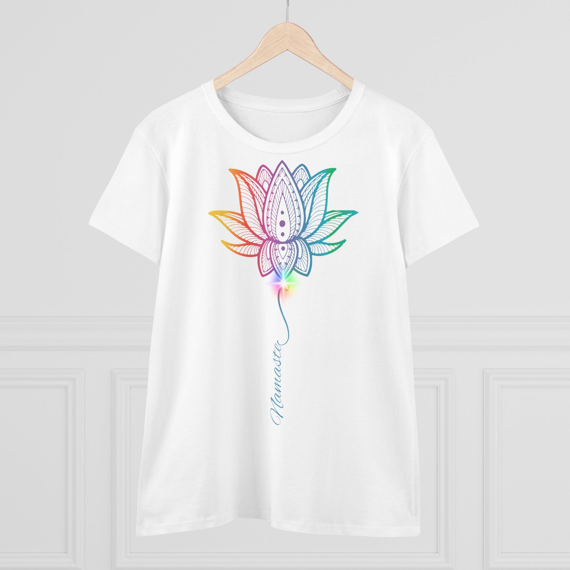 Elevate your casual wardrobe with this Women's Midweight Cotton Tee, perfect for any occasion. Featuring a serene lotus design, it exudes tranquility and positivity, making it ideal for yoga sessions, meditation, or simply lounging at home. This tee is not just a piece of clothing; it's a statement of mindfulness and self-care, appealing to wellness enthusiasts and those who cherish a balanced lifestyle. Its versatility shines through, making it suitable for everyday wear, as well as special events like yoga retreats, birthdays, or holiday gatherings. Celebrate yourself or gift it to a friend during occasions such as International Yoga Day or a cherished birthday, bringing a touch of elegance and comfort to their lives.
